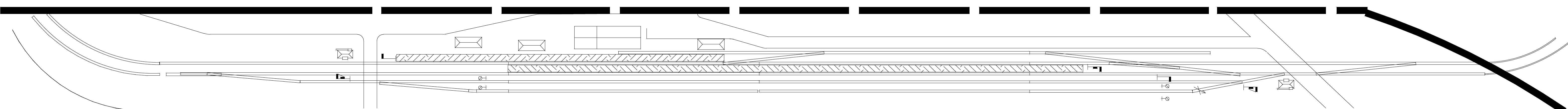 Hier ist unter möglichst weitgehender Berücksichtigung der diversen Vorschriften ein Bahnhof entstanden, der mit seinem Dampf-BW inkl. Lokschuppen, Drehscheibe und den aufwendigen Weichenstraßen einen abwechlungsreichen und vielseitigen Fahrbetrieb ermöglicht. Von der zweigleisigen Hauptstrecke (deren Elektrifizierung angenommenermaßen kurz vor der Vollendung steht) ist hier ein Übergang auf eine normalspurige Kleinbahn möglich.